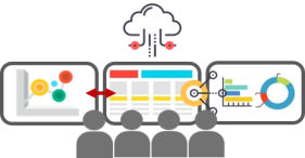 The Management Cockpit is a dedicated place for meetings, where dashboards are displayed on each wall of the room, providing specific information from each department within your company.
